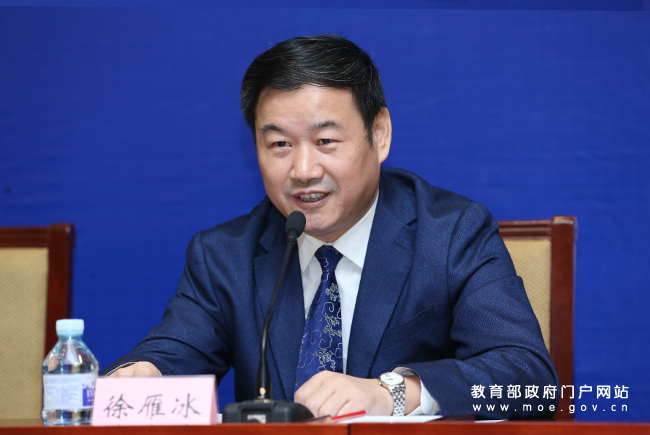 湖北省教育廳副廳長徐雁冰介紹總決賽籌備情況。(中國教育報記者 張勁松/攝)