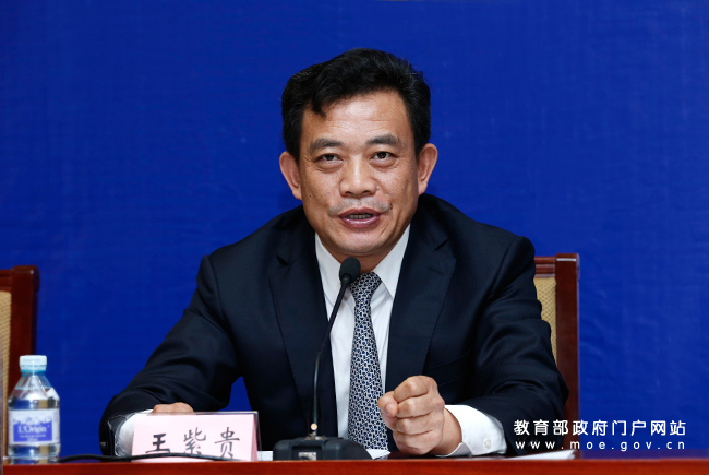 陜西省教育廳副廳長王紫貴介紹陜西省省賽組織情況和下一屆大賽承辦方案。(中國教育報記者 張勁松/攝)