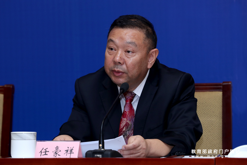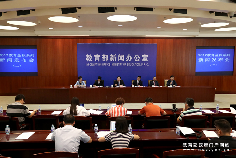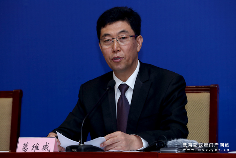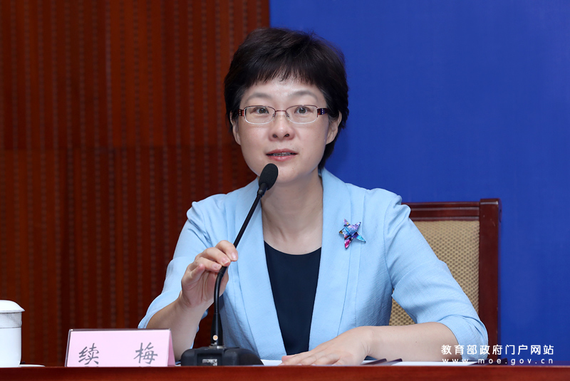 教育部新聞發(fā)言人續(xù)梅主持發(fā)布會(huì)。(張勁松/攝)