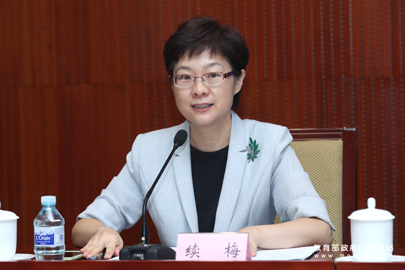 教育部新聞發(fā)言人續(xù)梅主持發(fā)布會。(中國教育報記者 張勁松/攝)