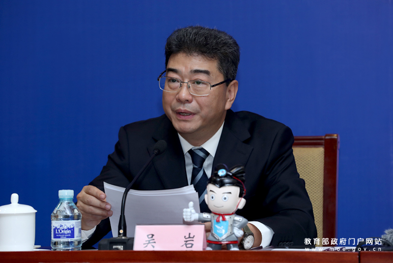 教育部高等教育司司長吳巖介紹第三屆“互聯(lián)網(wǎng)+”大學生創(chuàng)新創(chuàng)業(yè)大賽和深化創(chuàng)新創(chuàng)業(yè)教育改革進展情況。(中國教育報記者 張勁松/攝)