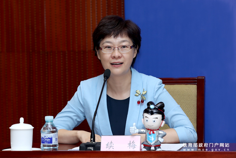 教育部新聞發(fā)言人續(xù)梅主持發(fā)布會。(中國教育報記者 張勁松/攝)