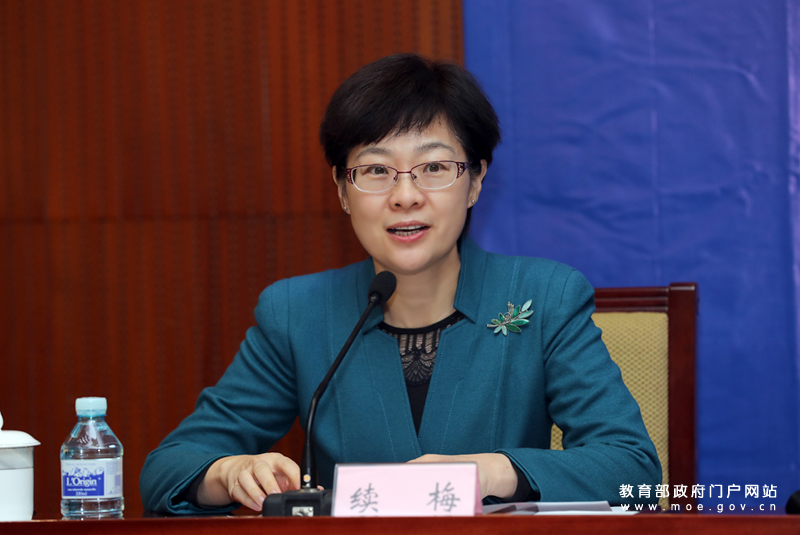 教育部新聞發(fā)言人續(xù)梅主持發(fā)布會。(中國教育報記者 張勁松/攝)