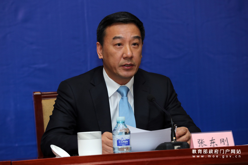 教育部思想政治工作司司長張東剛介紹《高校思想政治工作質(zhì)量提升工程實施綱要》有關(guān)情況。(中國教育報記者 張勁松/攝)