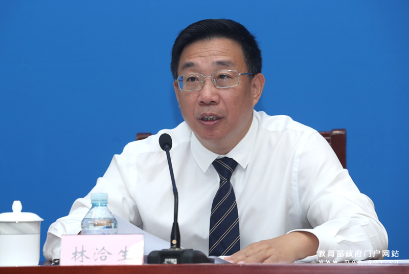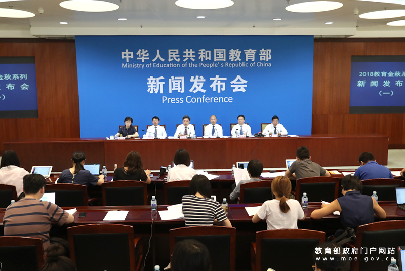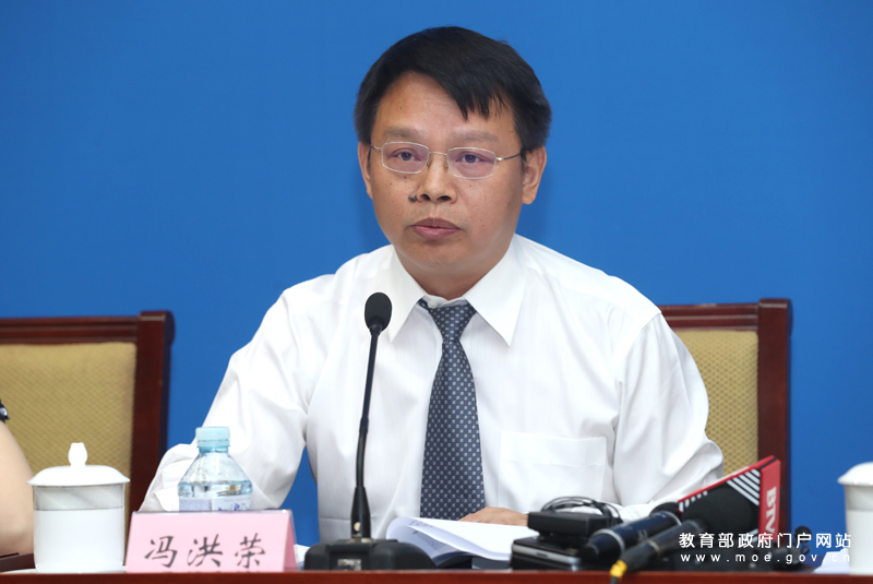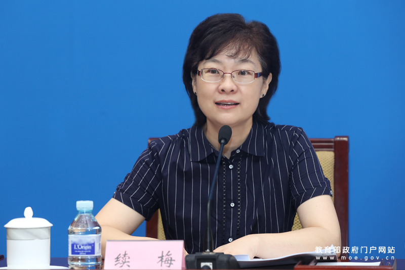 教育部新聞發(fā)言人續(xù)梅主持發(fā)布會(huì)。(中國(guó)教育報(bào)記者 張勁松/攝)