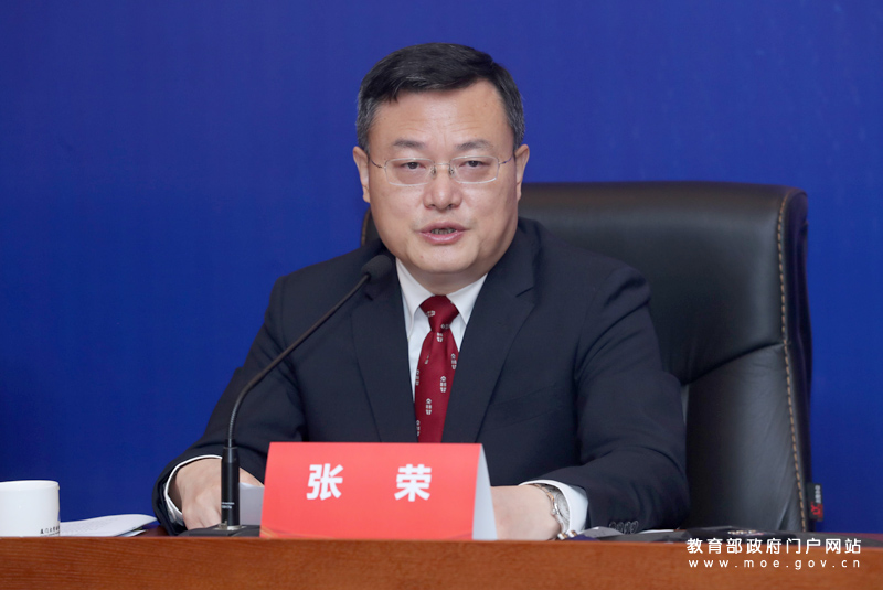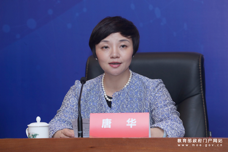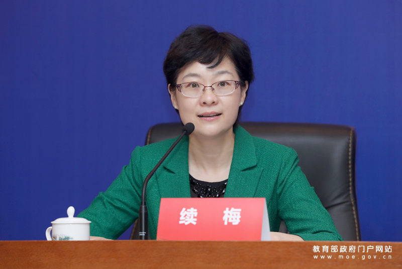教育部新聞發(fā)言人續(xù)梅主持發(fā)布會(huì)。(中國(guó)教育報(bào)記者 張勁松/攝)
