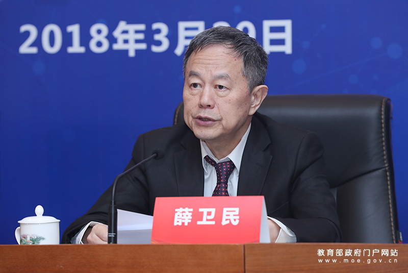 福建省政協(xié)副主席、教育廳副廳長(zhǎng)薛衛(wèi)民介紹福建省籌備情況。(中國(guó)教育報(bào)記者 張勁松/攝)