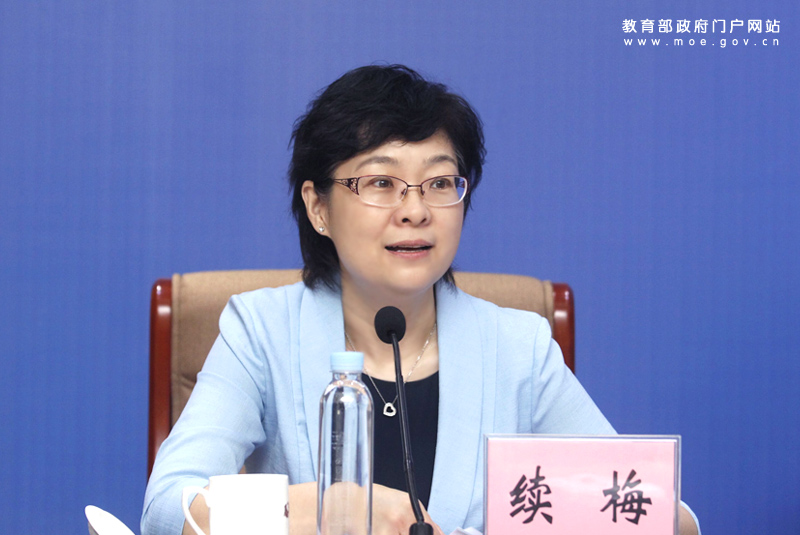 教育部新聞發(fā)言人續(xù)梅主持發(fā)布會(huì)。(廣州日?qǐng)?bào)記者 莊小龍/攝)