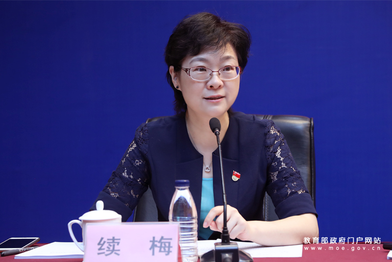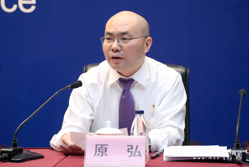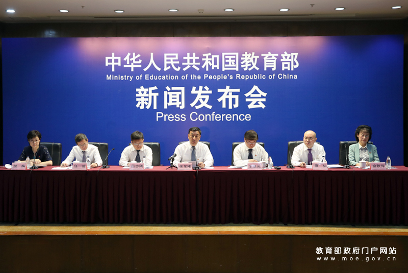 教育部新聞發(fā)言人續(xù)梅主持發(fā)布會(huì)。(中國(guó)教育報(bào)記者 張勁松/攝)