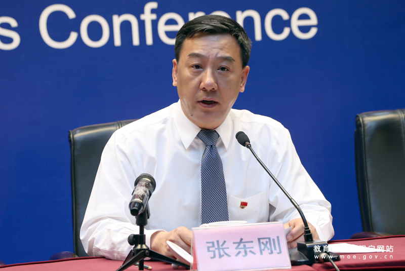 教育部思想政治工作司司長(zhǎng)張東剛介紹實(shí)施基層黨建質(zhì)量提升攻堅(jiān)行動(dòng)、寫(xiě)好高校黨建工作“奮進(jìn)之筆”有關(guān)情況。(中國(guó)教育報(bào)記者 張勁松/攝)