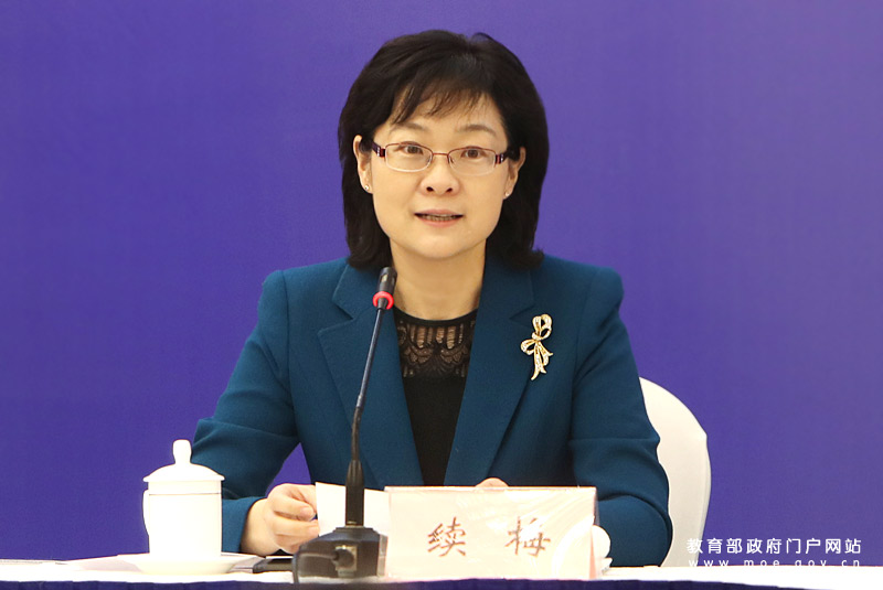 教育部新聞發(fā)言人續(xù)梅主持發(fā)布會。(中國教育報記者 樊世剛/攝)