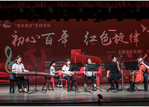 5月28日,上海音樂學(xué)院繼5月27日走進上海市徐匯區(qū)楓林街道進行文藝宣講后,又走進上海市閔行區(qū)群眾藝術(shù)館,舉辦以“初心百年 紅色旋律”為主題的音樂黨課。在青年學(xué)生的創(chuàng)意改編下,一首首膾炙人口的紅色旋律被演繹出青春的色彩?!都t星閃閃》被配上電子音樂伴奏,《建國大業(yè)》的主題曲《追尋》被改編成為弦樂四重奏,《我愛你,中國》更是將中西樂器大膽交融,以古箏和鋼琴的獨特音色增強了作品的感染力。伴著新時代的全新表達,在場群眾重溫了中華民族的輝煌歷史和風(fēng)雨歷程,紛紛表示要將紅色精神“薪火相傳”。