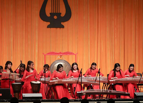 5月28日,“青春歌頌黨”慶祝中國共產(chǎn)黨成立100周年古箏專場(chǎng)音樂會(huì)在湖南大學(xué)大禮堂舉行?!缎腋G桨炒濉凤柡M蜔崆椋屓烁惺艿絼趧?dòng)人民自強(qiáng)不息、昂揚(yáng)向上的偉力。《山丹丹開花紅艷艷》和《唱支山歌給黨聽》抒發(fā)出人民對(duì)共產(chǎn)黨的無盡認(rèn)可與感激。箏聲里的頌歌,流轉(zhuǎn)著祖國的壯麗山河,人民的斗志昂揚(yáng)、安樂富足,又作傳情之音,歌頌黨在人民心中的偉岸身影,贊美民族勇士矢志不渝、舍己報(bào)國的精神。學(xué)校師生以傳統(tǒng)民族樂器——古箏為一端,牽引出愛黨愛國的無限衷情,向黨和人民已然走過的崢嶸歲月獻(xiàn)禮!