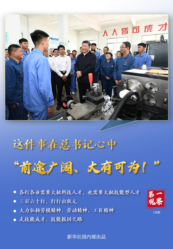 “要樹立正確人才觀”。習(xí)近平總書記反復(fù)強調(diào)培養(yǎng)技術(shù)技能人才的重要性,還多次走到老師和同學(xué)們中間,為大家加油打氣。