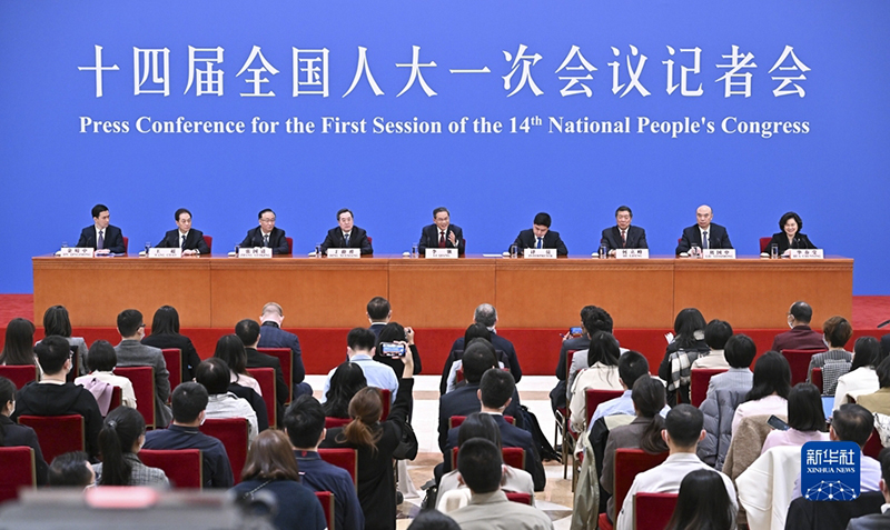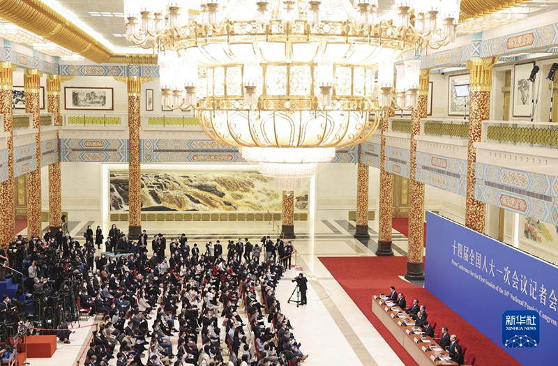 3月13日,十四屆全國人大一次會議在北京人民大會堂舉行記者會,國務院總理李強應大會發(fā)言人王超的邀請出席記者會,并回答中外記者提問。國務院副總理丁薛祥、何立峰、張國清、劉國中參加。(新華社記者 李鑫/攝)