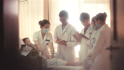 北京大學(xué)醫(yī)學(xué)部師生在病房做檢查。