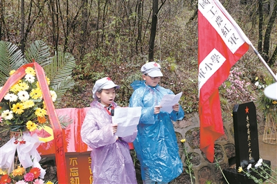 陜西照金北梁紅軍小學(xué)學(xué)生在清明節(jié)緬懷先烈。(學(xué)校供圖)