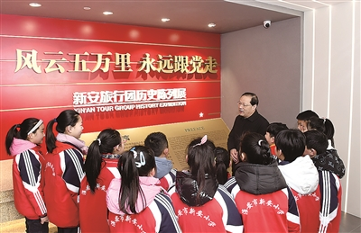 “收到總書記的回信后,我們校園發(fā)生了許多新變化。”新安小學(xué)校長張大冬介紹,在學(xué)習(xí)和探索中,新安小學(xué)逐步形成了落實(shí)回信精神、傳承紅色基因、弘揚(yáng)新旅傳統(tǒng)的三大“課堂”?!耙皇菍?shí)境課堂,我們帶領(lǐng)孩子們走進(jìn)新旅歷史紀(jì)念館,每年開學(xué)第一課,一年級(jí)的小朋友都要聽大哥哥大姐姐給他們講新旅的故事;二是體驗(yàn)課堂,通過排演劇目、詩歌朗誦的方式,開展主題教育活動(dòng),在活動(dòng)當(dāng)中讓孩子們體驗(yàn)新旅的紅色傳統(tǒng);三是實(shí)踐課堂,帶領(lǐng)孩子們走出校園,參加社會(huì)實(shí)踐活動(dòng),比如開展紅色尋訪活動(dòng),去年我們帶領(lǐng)同學(xué)們重走新旅路,尋訪新旅活動(dòng)舊跡,采訪新旅老團(tuán)員,和當(dāng)?shù)貙W(xué)校進(jìn)行交流學(xué)習(xí)?!睆埓蠖f。