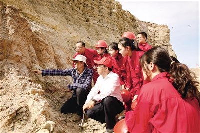 國家級教學(xué)名師朱筱敏與克拉瑪依校區(qū)學(xué)生進(jìn)行野外地質(zhì)實習(xí)。(學(xué)校供圖)