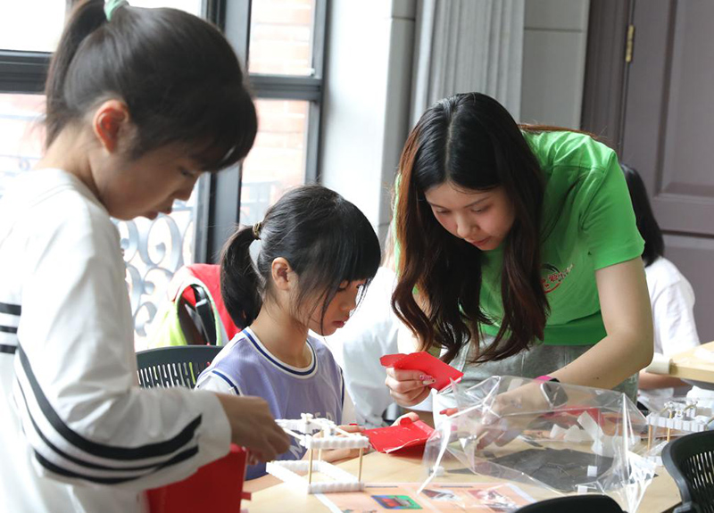 愛心暑托班既有上海市、區(qū)兩級(jí)統(tǒng)一配送的“德智體美勞”優(yōu)質(zhì)課程,也有辦班街鎮(zhèn)結(jié)合地區(qū)特色打造的專屬課程。例如,黃浦區(qū)老西門街道推出了“老西門·新六藝”系列活動(dòng),圍繞街區(qū)歷史給孩子們提供體驗(yàn)式學(xué)習(xí)。豐富而有趣的課程、靈活多樣的授課方式,受到孩子和家長(zhǎng)歡迎。