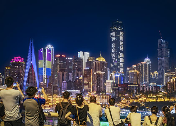 教師是執(zhí)燈者,為莘莘學子照亮前進的道路。第39個教師節(jié),重慶的夜晚為50余萬名教育工作者而亮,點亮那份專屬于他們的璀璨星光,弘揚尊師重教的時代風尚。