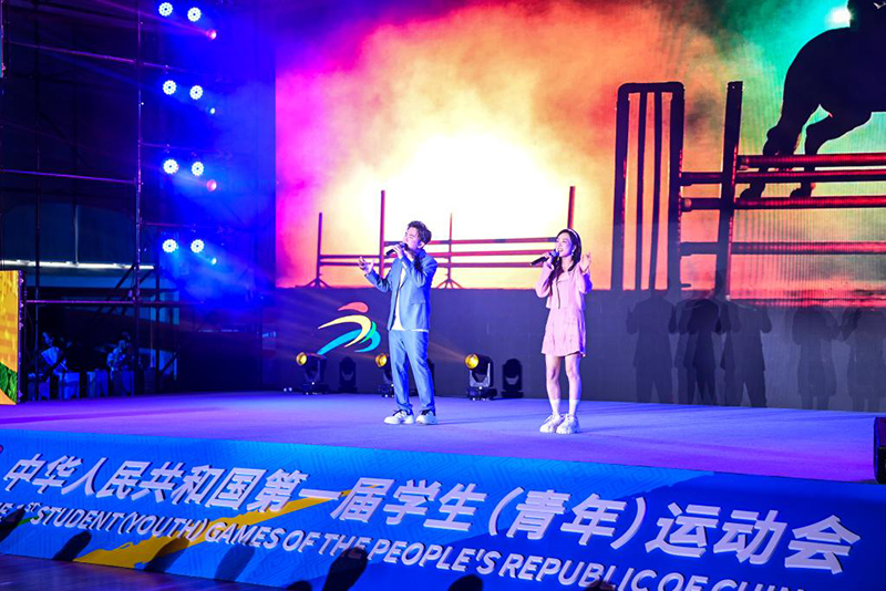 8月13日,歌手在演唱第一屆全國學(xué)生(青年)運(yùn)動(dòng)會(huì)會(huì)歌《青春遇見》。(新華社記者 曹祎銘/攝)