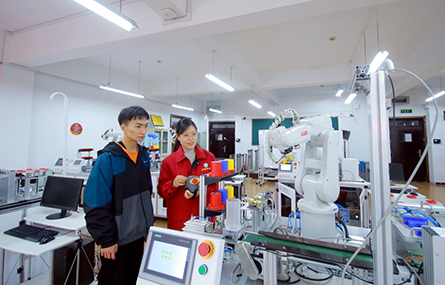 于是,李粉霞率先尋求校企合作之路,與蘇州勤美達精密機械有限公司連續(xù)九年開展“工學交替,頂崗實習”人才培養(yǎng)模式,實現(xiàn)了“校企雙主體”“過程四共同”(即共同制訂人才培養(yǎng)方案、共同組織實施培養(yǎng)過程、共同進行質(zhì)量監(jiān)控、共同安排就業(yè)) “效果五共贏”(學校、企業(yè)、教師、學生、家長);率先開展“理實一體化”教學模式改革,提煉并歸納大賽賽項、企業(yè)生產(chǎn)項目,開發(fā)賽訓融合課程;推行“三融合”項目化課程教學改革,建設(shè)實境化、企業(yè)化、生產(chǎn)化的校內(nèi)實訓工廠,推行現(xiàn)場教學與虛擬仿真相結(jié)合、課堂教學與課外活動相結(jié)合,知識教學與能力培育相結(jié)合的“三結(jié)合”教學模式;率先開展“社團傳、導師幫、師傅帶、大賽練”的傳、幫、帶、練四級培優(yōu)工程,更好地實現(xiàn)了“技能為本,立德樹人”的價值目標;率先為本科院校、贊比亞等海外學員開展師資培訓,承擔國培項目;率先成立數(shù)控技能大師工作室,淮海集團副總工程師“老匠人”李勇懷、中國運載火箭研究院首席技能專家韓利萍等11位技術(shù)精英成為駐校大師,共同培養(yǎng)創(chuàng)新拔尖人才,共同開展技術(shù)攻關(guān)、實施技術(shù)改造;率先在全省開展工業(yè)機器人技術(shù)專業(yè),申報獲批教育部工業(yè)機器人技術(shù)應用人才培養(yǎng)中心,并掛牌成為ABB工業(yè)機器人技能認證中心,確立了全省領(lǐng)先地位。