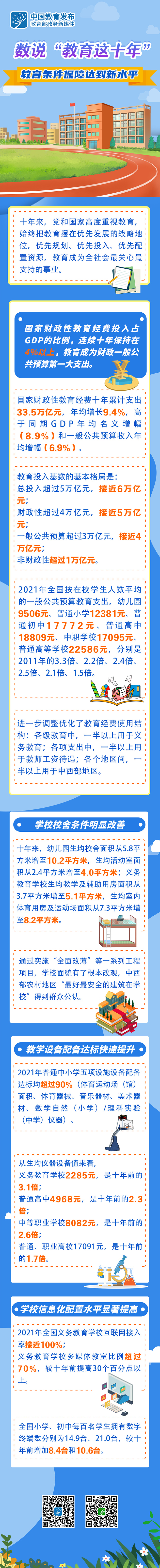 數(shù)說“教育這十年”:教育條件保障達到新水平