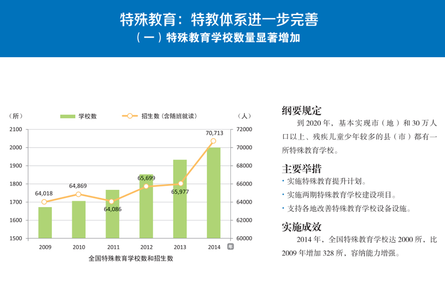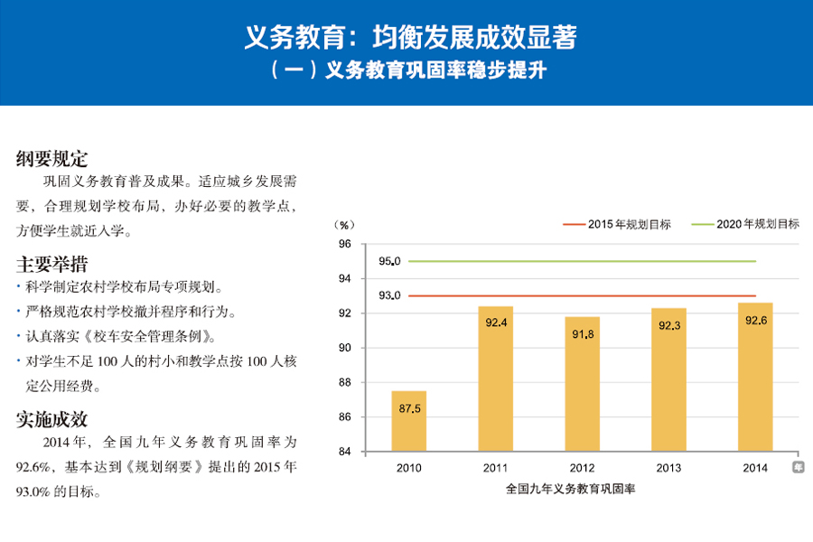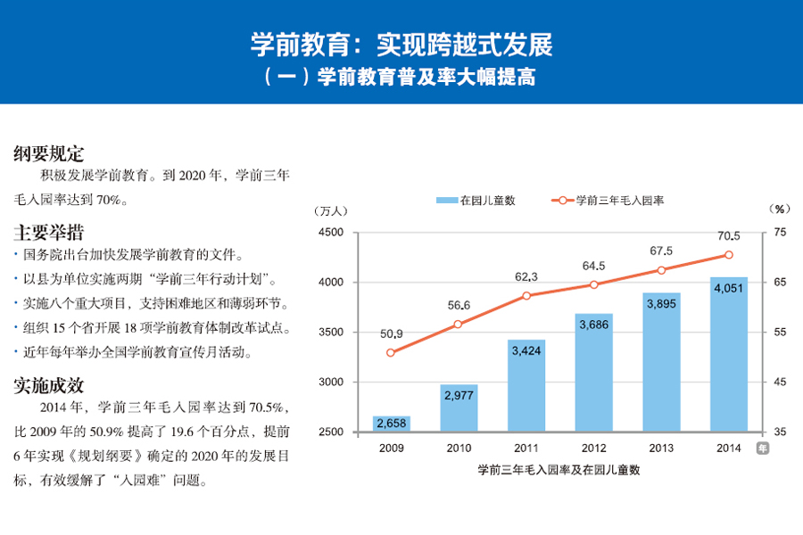 | [職業(yè)教育:體系框架基本形成] [特殊教育:體系進一步完善] [義務教育:均衡發(fā)展成效顯著] [學前教育:實現(xiàn)跨越式發(fā)展] | |