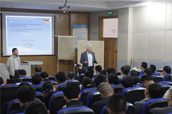 依據(jù)職業(yè)教育活動(dòng)周總體安排,5月12日上午邀請德國漢斯·賽德爾基金會(huì)駐上海代表邵貝德博士、德國職業(yè)學(xué)校質(zhì)量管理專家凱斯納先生來平度為平度雙元制校企聯(lián)盟內(nèi)理事單位舉辦職業(yè)學(xué)校質(zhì)量管理體系講座,來自50余家理事單位的相關(guān)人員到場聽課。