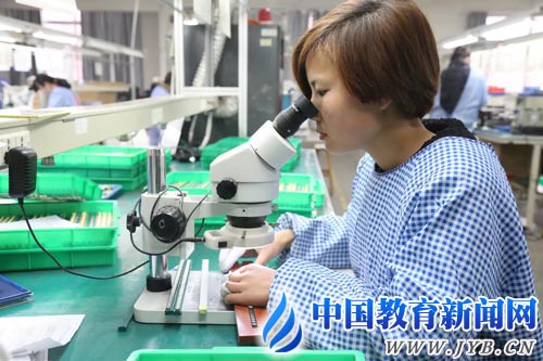3月19日,河南省溫縣職業(yè)技術教育中心的學生在校園車間檢測電感元件。近年來,河南省溫縣職業(yè)技術教育中心深入推進校企合作,積極探索“校企結合、工學結合、穩(wěn)定就業(yè)”的辦學模式,引入企業(yè)的生產(chǎn)車間直接進駐校園,校園車間可為學生提供50個實習崗位和120余個社會勞動力就業(yè)崗位。(徐宏星 攝)