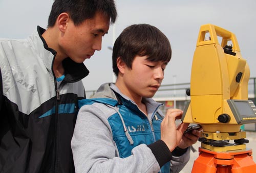2015年3月21日,陜西鐵路工程職業(yè)技術(shù)學(xué)院大學(xué)生在校園內(nèi)進(jìn)行測量技能實(shí)踐訓(xùn)練。作為國家骨干示范高職學(xué)院,近年來,陜鐵職院以服務(wù)鐵路事業(yè)發(fā)展和服務(wù)地方經(jīng)濟(jì)為導(dǎo)向,不斷創(chuàng)新人才培養(yǎng)模式,強(qiáng)化學(xué)生職業(yè)崗位核心能力培養(yǎng),為我國鐵路行業(yè)培養(yǎng)了大批技術(shù)技能人才,截至目前,該院2015屆畢業(yè)生已有93.8%與用人企業(yè)簽約。(張玉鵬 攝)