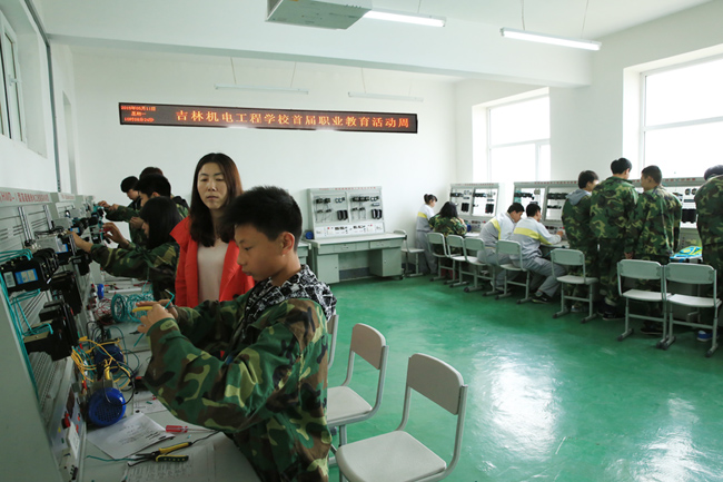 吉林機(jī)電工程學(xué)校職業(yè)教育活動周首日電機(jī)控制接線競賽現(xiàn)場