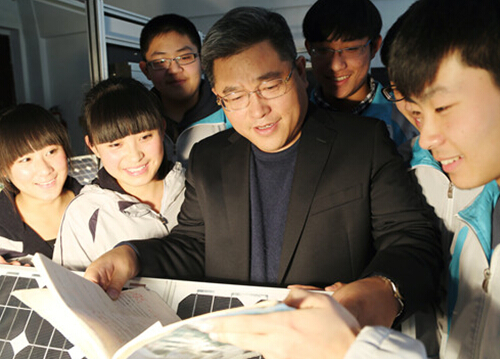 2008年,他臨危受命,擔任青島商務學校校長,并將這所瀕臨倒閉的職業(yè)學校辦成了島城名校。2010年,他勇?lián)厝?,來到首批國家級重點職業(yè)學校——青島電子學校任校長。他又一次身先士卒,開始了新的征程。
