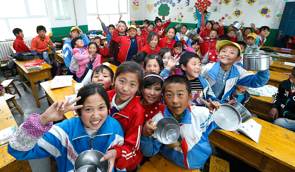 5月9日,采訪團一行走進(jìn)寧夏固原,就農(nóng)村營養(yǎng)改善計劃實施情況,走訪了三營鎮(zhèn)甘溝小學(xué)。圖為三營鎮(zhèn)甘溝小學(xué)四年級(1)班的學(xué)生在教室內(nèi)等待吃中午飯。
