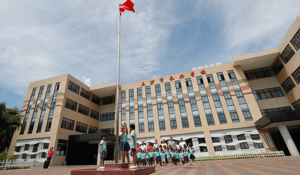 6月29日,采訪團一行走進(jìn)我國最南端的學(xué)?!D鲜∪呈杏琅d學(xué)校。該校8名教師和32名學(xué)生正在舉行升國旗儀式。