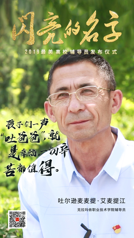 吐爾遜麥麥提?艾麥提江,男,維吾爾族,中共黨員,大學(xué)本科,1966年10月15日出生于新疆伊犁哈薩克自治州霍城縣,1984年考入新疆石油學(xué)校(克拉瑪依職業(yè)技術(shù)學(xué)院前身),1987年,在校一直擔(dān)任班長(zhǎng)的吐爾遜麥麥提因表現(xiàn)優(yōu)異,畢業(yè)后留校工作。他精通維吾爾語、漢語和哈薩克語,先后從事過多種崗位,常常身兼數(shù)職,擔(dān)任輔導(dǎo)員崗位已近20個(gè)年輪。