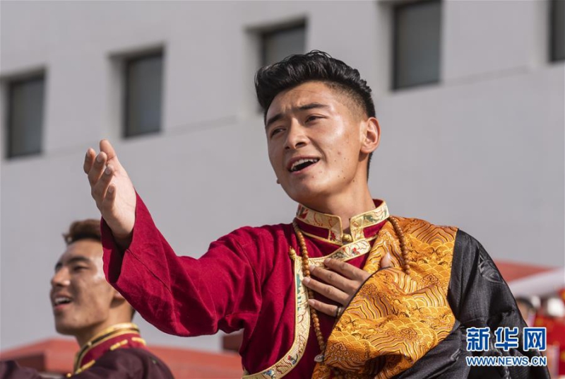 9月12日,西藏大學(xué)新校區(qū)圖書館前,大學(xué)生在參加“青春告白祖國”活動。 當(dāng)日,西藏大學(xué)各族大學(xué)生參加“青春告白祖國”活動。 (新華社記者 晉美多吉/攝)