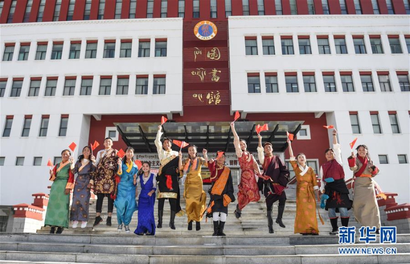 9月12日,西藏大學(xué)新校區(qū)圖書館前,大學(xué)生在參加“青春告白祖國”活動。 當(dāng)日,西藏大學(xué)各族大學(xué)生參加“青春告白祖國”活動。(新華社記者 晉美多吉/攝)