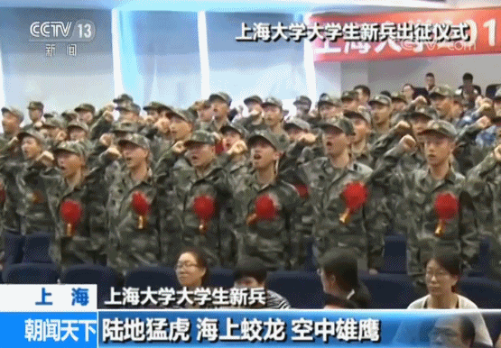 這段令人熱血沸騰的畫面是18日下午上海大學(xué)大學(xué)生新兵出征儀式上的宣誓。76名參軍入伍的同學(xué),將奔赴祖國(guó)各地,保家衛(wèi)國(guó)。