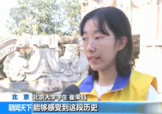 北京大學(xué)學(xué)生 崔榮鈺:圓明園作為一個(gè)愛國(guó)主義教育基地,我希望我作為一個(gè)歷史的講解者,讓聽到我講解的游客能夠感受到這段歷史,然后感受到自己身上的民族責(zé)任感,更加熱愛我們的祖國(guó)。