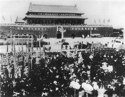 北京高校師生參加開(kāi)國(guó)大典。(資料圖片)
