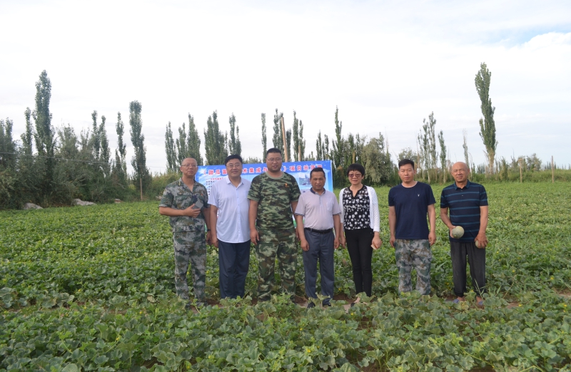 圖1 石河子大學(xué)黨委副書記、校長代斌(中間)親臨核心示范區(qū)甜瓜地進(jìn)行調(diào)研
