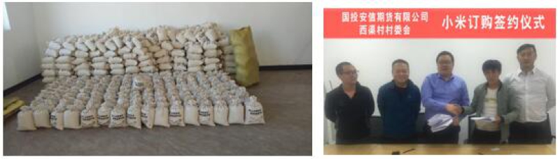 三是包裝宣傳特色農(nóng)產(chǎn)品,打造品牌。扶貧工作隊(duì)堅(jiān)持因地制宜,挖掘當(dāng)?shù)刂赂惶厣Y源。西渠、南溝兩村遠(yuǎn)離城市,生態(tài)植被好,環(huán)境污染少,有小米等傳統(tǒng)特色產(chǎn)業(yè),有梅杏等經(jīng)濟(jì)作物,扶貧工作隊(duì)員利用自身的專業(yè)優(yōu)勢,幫助兩村村民包裝農(nóng)產(chǎn)品,以綠色健康為特色,打造農(nóng)產(chǎn)品品牌,聯(lián)系企業(yè)購買產(chǎn)品,拓展銷售渠道。先后聯(lián)系國投安信期貨有限公司、上海紅一投資管理有限公司、上海永鋼實(shí)業(yè)有限公司分別與西渠村以每斤6元的價(jià)格簽訂10595斤小米訂購合同,極大帶動(dòng)了群眾種植小米的積極性。