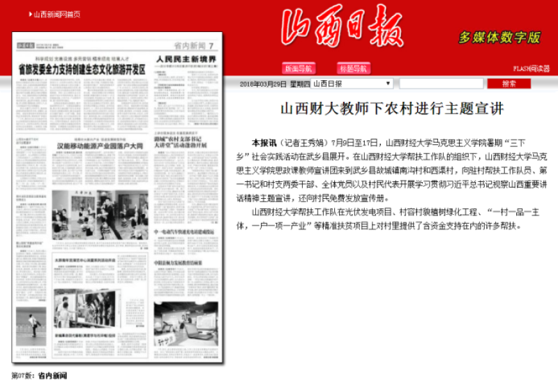 《山西日報(bào)》報(bào)道山西財(cái)經(jīng)大學(xué)教師下農(nóng)村進(jìn)行主題宣講