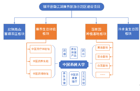 2.建設(shè)內(nèi)容。項(xiàng)目主要包含康養(yǎng)生態(tài)體驗(yàn)板塊(中醫(yī)藥博物館、中醫(yī)藥養(yǎng)生艙、中醫(yī)芳療體驗(yàn)館)、百草園種植基地板塊(黃連示范種植基地、百合、芍藥、白芨等中藥材種植園)、欣陜高山富硒茶莊板塊、冷水魚(yú)生態(tài)園板塊等四大板塊內(nèi)容,其核心區(qū)域?yàn)榭叼B(yǎng)生態(tài)體驗(yàn)板塊,著力打造集中醫(yī)藥康復(fù)理療、養(yǎng)生保健、文化體驗(yàn)于一體的中醫(yī)藥健康旅游示范基地,配套中國(guó)藥科大學(xué)研發(fā)的藥膳、藥妝、養(yǎng)生保健產(chǎn)品,達(dá)到吸引游客養(yǎng)生體驗(yàn)的目的。