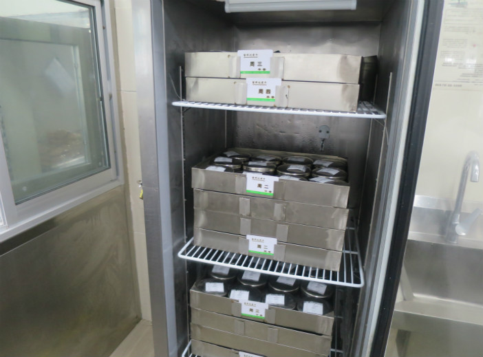 據(jù)李立群副校長(zhǎng)介紹,食堂每天的飯菜會(huì)都取樣并在此保留48小時(shí),一旦有學(xué)生出現(xiàn)食物中毒現(xiàn)象,便能立刻調(diào)查出是哪種菜出了問(wèn)題。