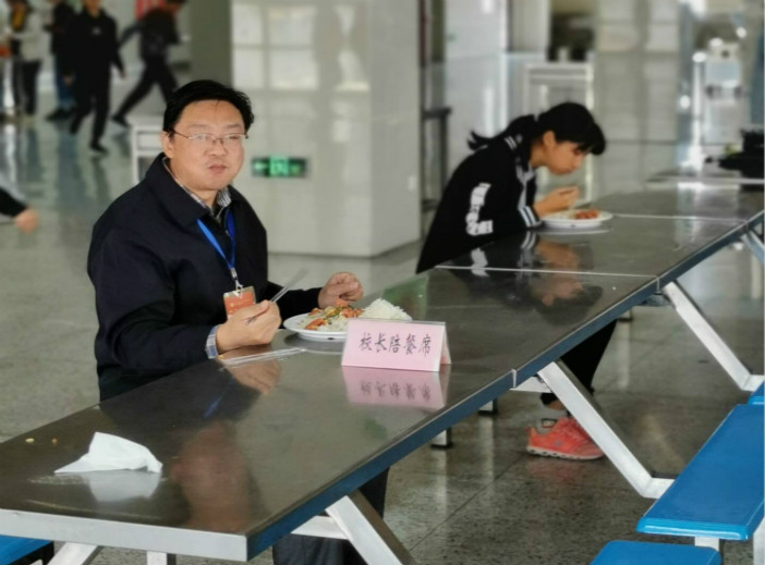 口岸中學(xué)校長(zhǎng)丁駿在食堂陪餐