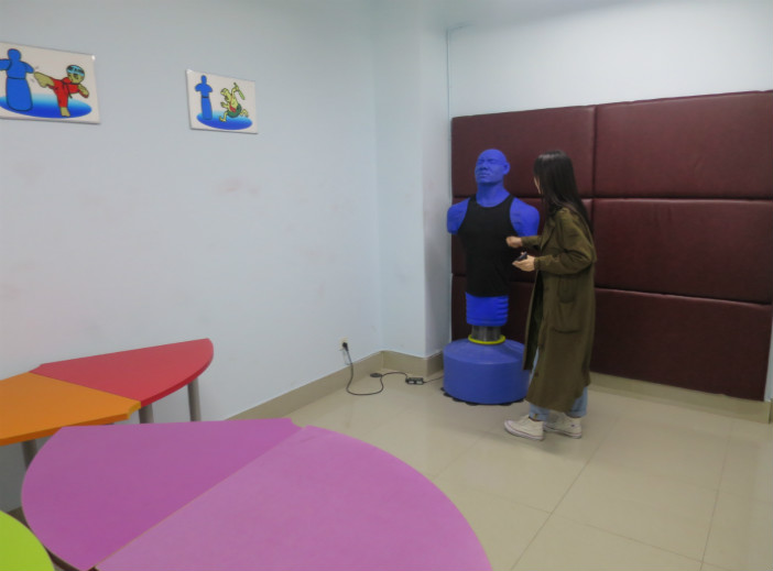 學(xué)校十分重視新疆班學(xué)生的心理健康安全教育,設(shè)有“學(xué)生成長(zhǎng)指導(dǎo)中心”,為學(xué)生提供心理輔導(dǎo)與心理咨詢服務(wù),減輕他們因遠(yuǎn)離親人、學(xué)習(xí)競(jìng)爭(zhēng)帶來(lái)的壓力。記者一行參觀了與心理健康安全教育相關(guān)的心理閱覽室、情緒宣泄室、音樂(lè)放松室等,室內(nèi)的裝潢色彩柔和,為學(xué)生提供了舒適的心理治愈環(huán)境。