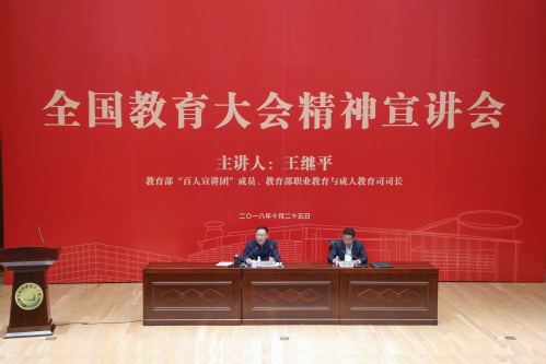 王繼平從充分認(rèn)識全國教育大會的重大意義,深入學(xué)習(xí)、領(lǐng)會習(xí)近平總書記關(guān)于教育的重要論述,扎實(shí)推進(jìn)教育大會確定的加快現(xiàn)代化重點(diǎn)任務(wù),譜寫新時(shí)代職業(yè)教育新篇章等四個(gè)方面,全面、系統(tǒng)、深入地解讀了全國教育大會精神。他強(qiáng)調(diào),深入學(xué)習(xí)貫徹習(xí)近平總書記重要講話和全國教育大會精神是當(dāng)前和今后一段時(shí)間各級各部門的重要政治任務(wù),是全國教育系統(tǒng)的頭等大事。